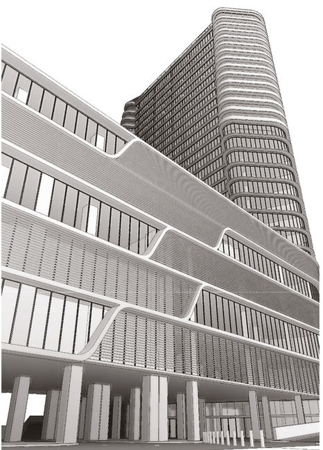 The lower floors house a shopping centre and above it, a centre for recreational activities for children, a tower for residential use, a residence and a mixed tower in which there are office spaces and a 300-room 5-star hotel with an adjoining conference centre.